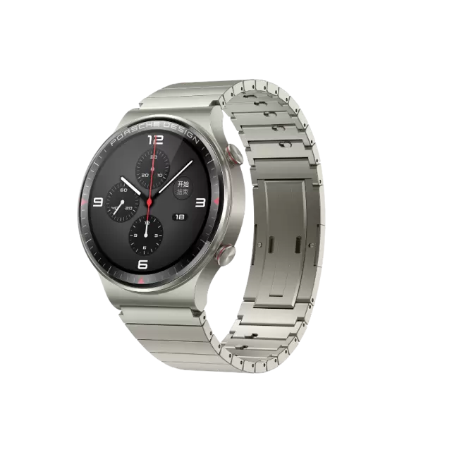 HUAWEI WATCH GT 2 保时捷设计流线型的机身设计唤起速度之美,蓝宝石玻璃镜面上方的“PORSHCE DESIGN”标识与指针刻度相得益彰,钛金属一体化表体与表带,经过精密的喷砂工艺,呈现出完美的磨砂哑光质感,外在高级沉稳,内在坚实耐磨,经得起时间考验,户外运动也得心应手。