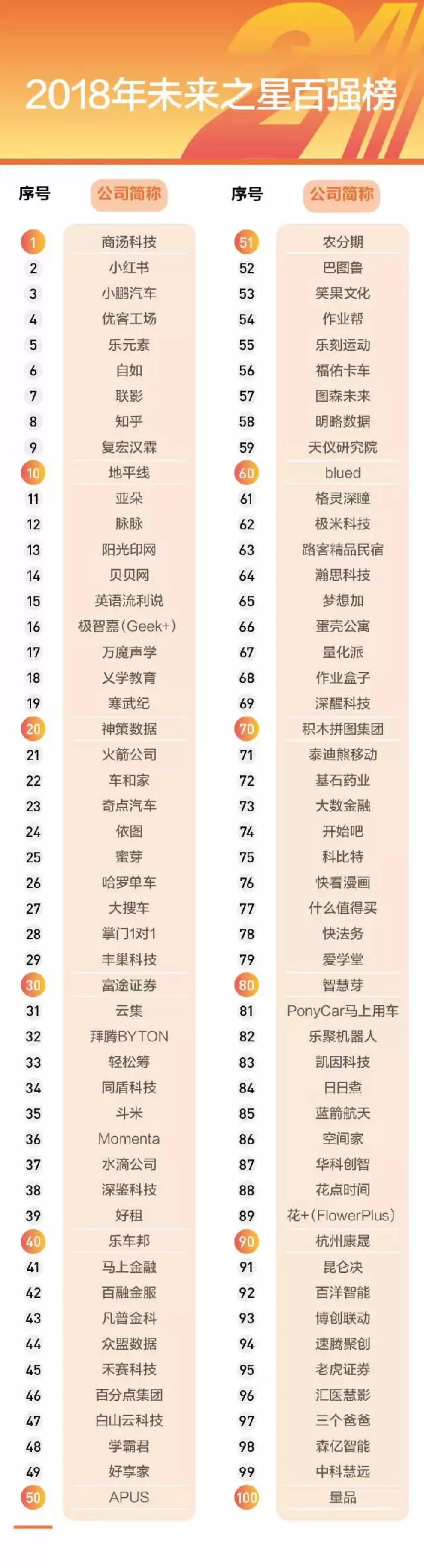 子榜:2018年度未来之星100强企业榜单(包含21未来之星上榜企业)