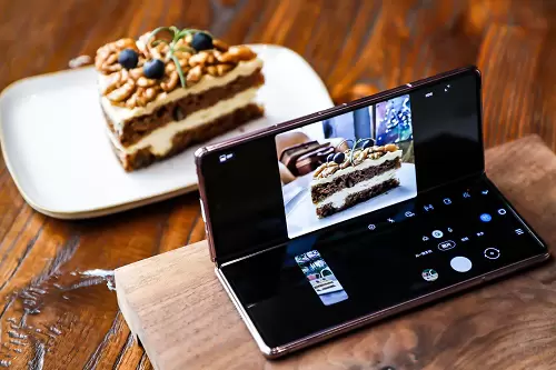 三星Galaxy Z Fold2 5G的“捕捉和查看”模式可在拍摄时实时查看照片和视频。与自适应分屏模式配合使用,可在主屏幕的下半部分查看五张最新拍摄作品,同时可在上半部分预览下一张照片,这样在拍摄的时候可以随时进行回看,并且避免了应用间的频繁切换。