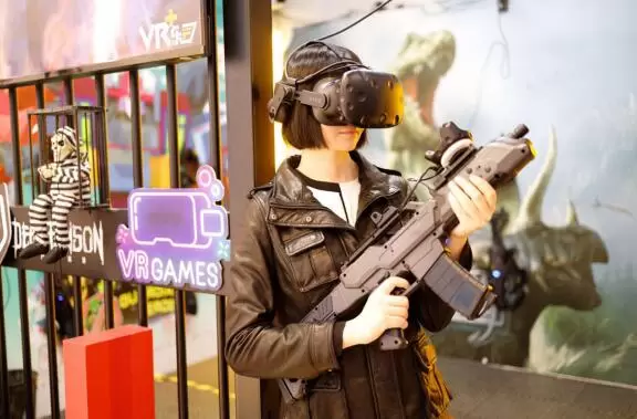 每逢周末、节假日,魔都晶耀前滩商场B1区一个名为VR乐园“云XR娱乐空间”体验区总会人潮涌动,热闹非凡。人群中央,3-5位头戴VR眼镜的小朋友或着年轻人,手持一把VR虚拟枪,通过虚拟现实场景,利用10-15分钟的时间就能进行一次酣畅淋漓的游戏体验。在游戏中,玩家需要通过VR虚拟枪与霸王龙、翼龙等诸多恐龙展开一番搏斗,完成逃生任务。据了解,这个名叫《重返侏罗纪》的游戏是5G体验中最受欢迎的VR游戏之一。