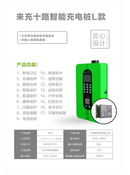 山野电器基于中国移动OneMOLTE Cat.1模组ML302开发了充十路智能充电桩L款。以分布式物联网云为核心技术,形成集产品、运营、运维和服务于一体的解决方案,对电动车充电实时监控,保证充电安全。全新智能组合式产品,支持投币支付、扫码支付、刷卡等多种支付方式,安全充电,方便快捷,最大程度的满足客户多方面体验。设备状态、充电数据、监控告警和用户数据等多维度数据平台,可实时监控、查询和管理;从而实现智能运营和维护,以及大数据分析和挖掘应用。充电过程采集数据形成充电曲线,实时监控充电过程中的安全隐患。如果出现火灾,来充烟雾传感器会立刻侦测到火灾,将报警信息直接传送给物业监控中心、充电用 户和消防部门。同时,自动启动灭火装置,确保充电安全。