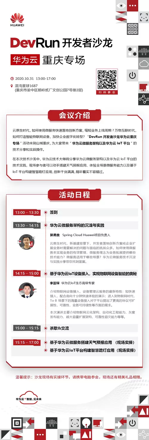 DevRun开发者沙龙华为云重庆专场为开发者打造一个有温度的技术交流与学习平台,不仅是一场为开发者答疑解惑的干货分享,更是一次寻求高效开发路径的实战操作演练。