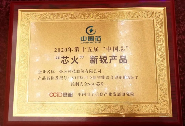 2020年“中国芯“征集活动共收到来自 165 家企业、累计 245 款芯片产品的报名材料,炬芯科技股份有限公司的 VUI 应用下的多麦克风远场拾音的智能语音交互 AIoT 芯片,荣获本届 “芯火”新锐产品奖。