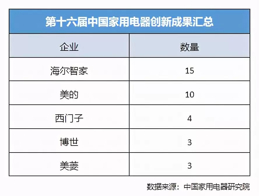 10月22日,由中国家用电器研究院主办的“第十六届中国家用电器创新成果发布盛典”在北京成功召开,会上中国家用电器研究院发布了技术、产品、设计等领域的多个榜单。综合榜单创新成果,海尔智家获15项,美的获10项,西门子获4项,博世和美菱分别获3项。