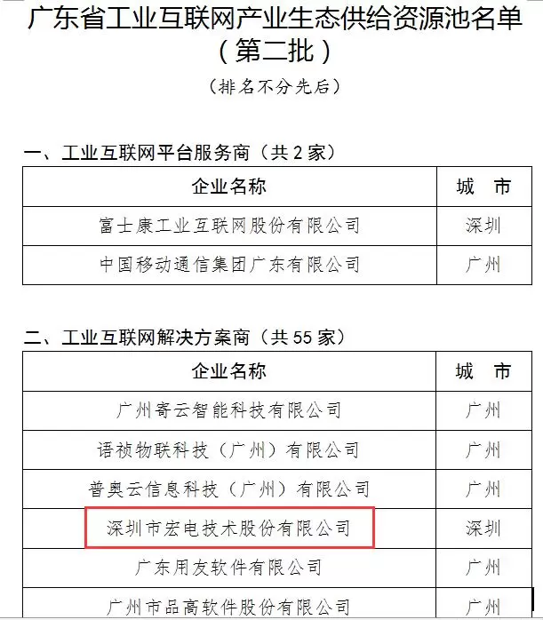 宏电实力入选广东省工业互联网产业生态供给资源池