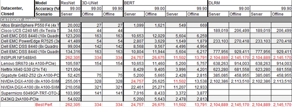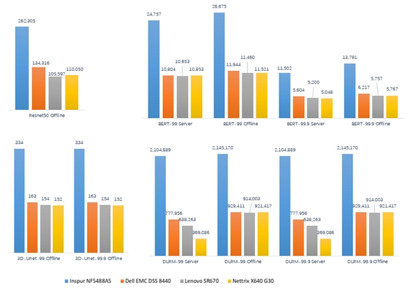 作为全球领先的AI算力供应商,浪潮拥有业内最强最全的AI计算产品阵列:其中浪潮NF5488A5是全球首款在4U空间内支持8块安培架构A100芯片实现NVLink高速互联的AI服务器,在全球权威AI基准测试MLPerf中,一举创造18项全球性能纪录,在Resnet50推理任务测试中,以54.9万/每秒的全球服务器最好成绩,同比19年纪录提升3倍;此前,NF5488A5在今年7月公布的MLPerf训练榜单中,在Resnet50训练任务中,仅用时33.37分钟就完成了ResNet50模型基于ImageNet 数据集的训练任务,单服务器性能成绩高居榜首。同时,在推动算力多元化层面,率先推出MX1全球首个AI开放加速系统,可支持多家不同型号的AI芯片直接更换。