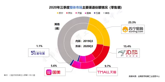 苏宁易购再亮家电实力,稳坐2020年三季度家电全渠道第一