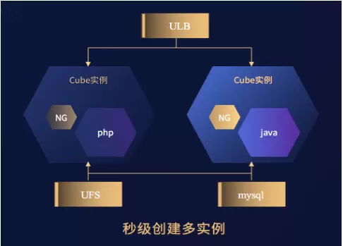 最后,张苗磊分享了一个 Cube比较典型的使用场景,从这个图中我们可以看到所有的计算功能都可以通过Cube容器的实例来提供,而入向流量通过ULB来实现,后接的存储、数据库都可以通过云上原生提供的mysql或者UFS来实现,这样架构可以很好的提供计算、存储分离,并且能够提供快速横向扩展和弹性资源使用的能力。关于这个架构具体的使用情况可以通过B站观看详情。