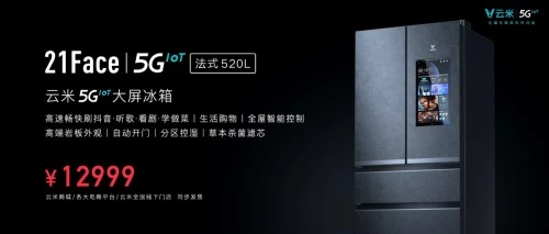 此外,作为高端好冰箱,云米5GIoT大屏冰箱还拥有包括520L超大容量、矢量变频、风冷无霜等多项业内一流配置。高端豪华,科技领先,21Face云米5GIoT大屏冰箱(法式520L)仅售12999元。