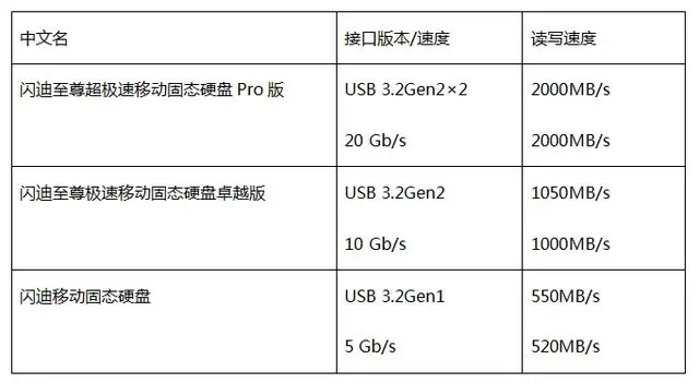 新一代的产品在速度上有了明显的升级,依托USB-C接口版本,三款产品也形成了速度上的梯级: