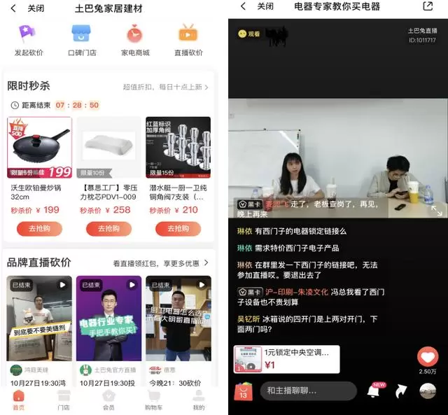 土巴兔电器直播的吸睛之处在于,一来是商品价格实惠,再者就是服务保障。而为了提供更富场景化的服务,土巴兔甚至在直播间有专门的"直播体验官",可量身打造满足个人需求的产品。
