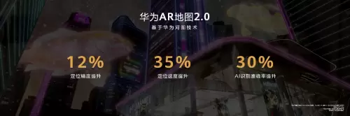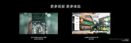 华为AR地图2.0时代,在原有的高精度空间计算、厘米级3D地图等技术能力的基础上,进一步基于现有真实场景进行了大量的算法验证与优化,并结合华为软硬件一体的协同调优,最终实现了全方位的性能指标提升。其中,定位精度提升12%,定位速度提升35%,AI识别准确率提升30%。如此全面的性能提升带来的是用户手机里更流畅、更逼真的AR体验,让虚拟与现实世界更加无缝融合。
