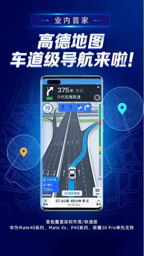 高德地图率先上线车道级导航 华为Mate 40用户可尝鲜体验