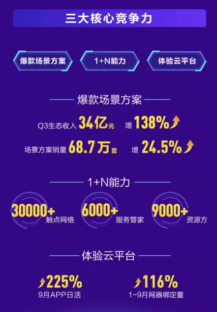 能够开辟全新赛道、实现市场引领,源于三翼鸟背后“爆款场景方案”、“1+N能力”、“体验云平台”3大核心能力支撑。