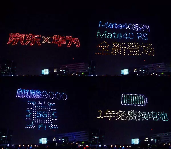 京东华为联合上演无人机表演 庆祝Mate 40系列8秒破亿