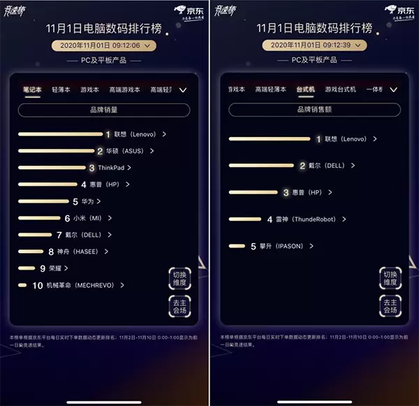 京东电脑数码11.11竞速首日:联想领跑6大榜单成消费者最爱