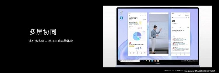 去年EMUI10的畅连功能,打破设备边界,实现华为手机与手机、智慧屏、音箱等设备的音视频通话。EMUI11分布式能力再升级,多屏协同实现在PC上同时打开三个手机应用窗口,多任务可同步进行,效率翻倍。手机一键变电子白板,还可一键投屏演示讲解。畅连更进一步,推出拟人交互,手机和大屏之间也可以通过消息沟通。