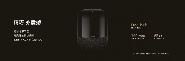 同时,华为智能音箱产品家族也迎来新成员——帝瓦雷全频调音的华为Sound。它的低音系统由1个4英寸低音喇叭+2个被动单元组成,此外还内置了3个全频喇叭单元,带来360度环绕声场。ID设计更精致小巧,采用了标志性PUSH-PUSH对称结构,能带来最大瞬态功率144W,最大声压级90dB的震撼人心的音效感受。华为Sound双音箱立体声,搭配屏类产品,可组建分布式立体声影院,带来更低时延的无线音画沉浸式体验。这就是华为Sound,精巧震撼,声来不凡。