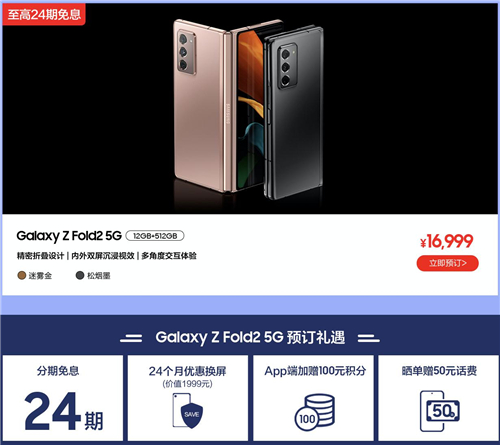 三星Galaxy Z Fold2 5G官方商城优惠活动