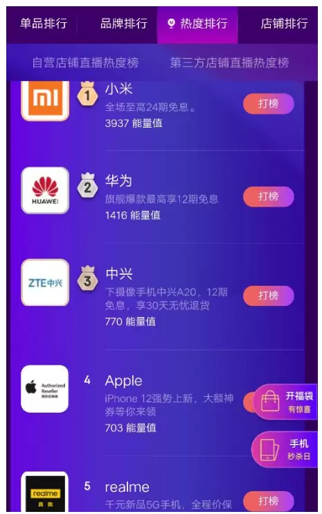 从单品排行来看,realme Q2一骑绝尘位列新品手机实时销量榜第一名,K30s至尊纪念版也颇受欢迎位居第二位。从价位段来看,Redmi 8A位居1500元以下手机实时销量榜首,榜单前五名中Redmi手机占据了四位,可谓是备受消费者追棒;在3500元-5500元价位段,小米手机与华为手机颇受欢迎,其中,华为 P40以及华为 nova7 Pro占据两名席位;一加 8T手机也榜上有名;而在5500元以上价位段,华为手机战绩依旧辉煌,华为P40 Pro与华为Mate 40 Pro在销量榜前三中占据两名席位。