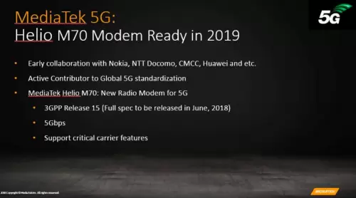 从策略上来看,联发科布局5G已是成功,从技术层面,似乎佐证了联发科这一次胜率更大。在今年的台北电脑展上,联发科就已经发布了旗下首款5G基带芯片M70,采用了先进的7nm制程工艺,并且将会在明年正式商用,而这一商用时机,恰好与之前运营商表示将于2019年底试商用5G的时间想吻合,看来前瞻性的研发投入,即将在一年多之后迎来回报,抢得市场先机。