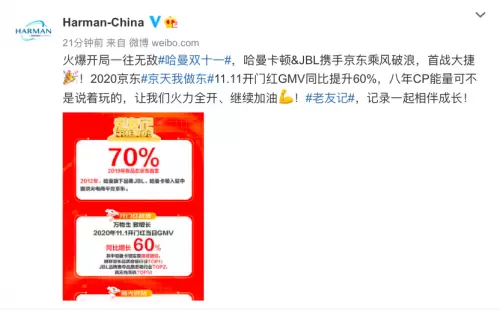 京东11.11哈曼GMV同比猛增60%背后:强强联合+花式营销造销售奇迹
