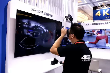 4K花园现场展出了在自主品牌演唱会现场直播中采用的8K VR多机位转播制作与技术应用,将所有超高清VR信号,通过5G链路传输到云端搭建的导播系统,节目导播可以在云端进行VR画面的镜头调度切换。现场通过8K电视看到现场录制的8K VR全景效果,感受到清晰细腻的画面细节。通过VR眼镜,可以亲身感受真正的高品质VR演唱会所带来的震撼效果。据介绍,这套5G+8K VR云直播解决方案,4K花园也将会在后续直播项目中沿用,不断探索针对VR方面更加有趣的表现形式和场景,推动VR市场的发展。