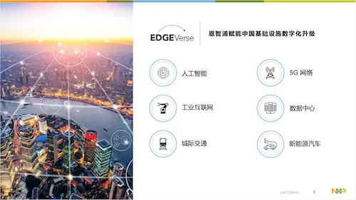 目前,恩智浦的边缘处理应用涉及网络边缘、工业边缘、物联网边缘这三大类,几乎涵盖了人们日常工作生活中所接触到的方方面面。EdgeVerse产品可以满足中国数字化网络建设七个重点领域中的六个,覆盖人工智能、工业互联网、城际交通、5G网络、数据中心及新能源汽车。