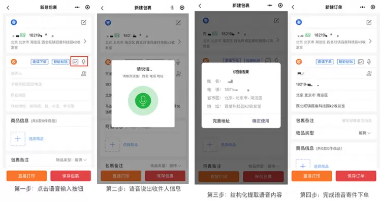 通过接入百度大脑语音识别技术,小微商家发货平台风火递小程序实现了语音录入快递信息。寄件者只需轻松动动嘴,就可以按照语音内容提取收/发件人姓名、电话、地址等6个关键字段,完成快递单信息录入。不管用户是说着略带口音的普通话,还是说着粤语、四川方言,百度语音技术也都能很好的进行识别,极大提高了用户体验。