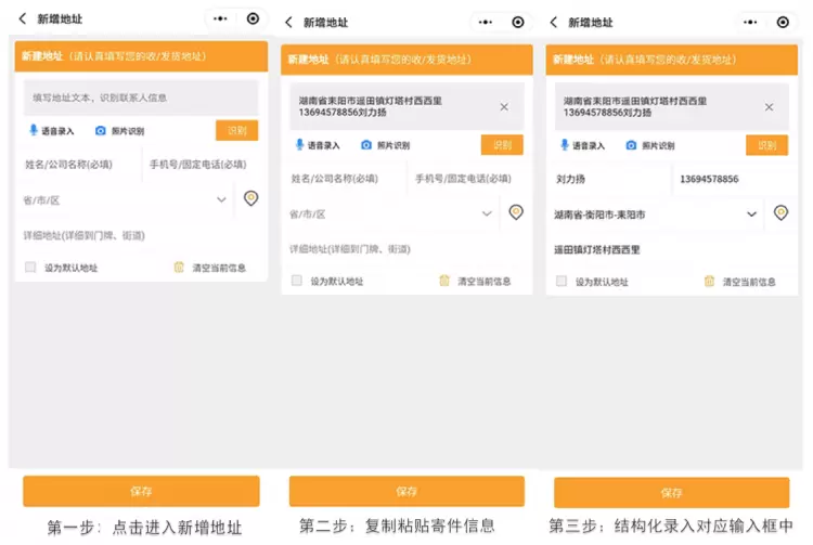 首先,在下订单环节,常常存在“买卖东西一时爽,信息输入超麻烦”的痛点问题。寄件时,『门牌号、手机号码,这输错一个数字就是千差万别』、『名字还有生僻字,找都找不到』、『地址反复核对,还是有错』都道出了不少人的心声。特别是每天都需处理大量订单的商家更是『苦不堪言』。