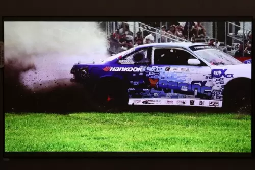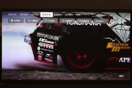 MEMC运动补偿功能可以更好地显示下足球赛事、赛车等各类高速画面,我们播放了一段运动视频,用100吋的大屏幕来看这类视频实在是太爽了。