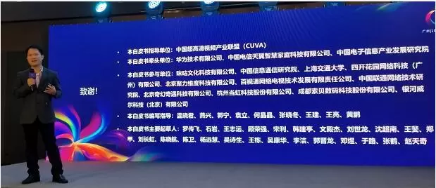 该白皮书由华为技术有限公司、中国电信天翼智慧家庭科技有限公司联合多家伙伴共同编写,由中国电信天翼智慧家庭科技有限公司罗传飞博士代表超高清视频产业联盟发布。