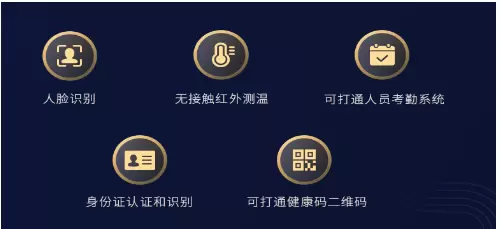 产品可充当办公门禁入口,通过人脸识别和测温进行防疫和员工考勤签到,支持定期汇总导出员工的考勤异常报表,外包人员、临时工则可通过身份证等进行认证。