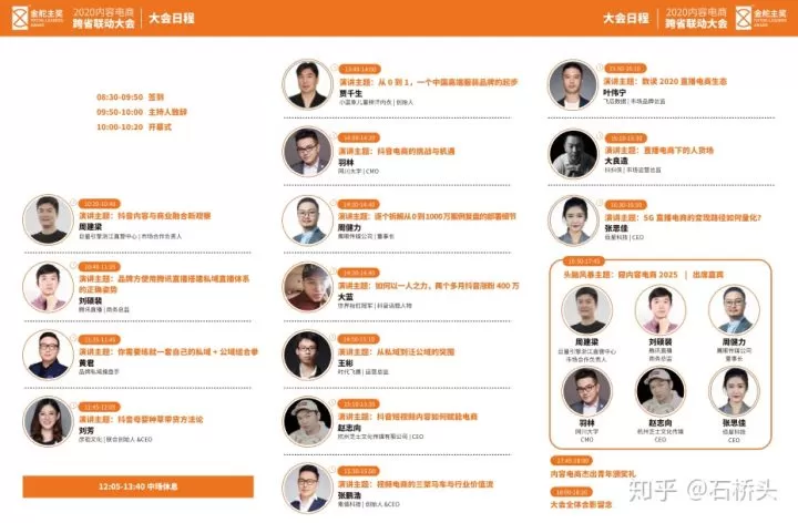 因此,在过去两个多月的筹备时间里,大会组委会遍邀各大直播电商平台、品牌、MCN机构、数据及培训等内容直播电商领域的14位精英领袖和实战大咖,组成本次大会的核心贵宾阵容,带领大家一起,仔细梳理本行业的发展脉络和运行规律,分享他们本人作为行业精英的发展战略、操盘经验和踩坑教训,供大家彼此借鉴、互相学习。