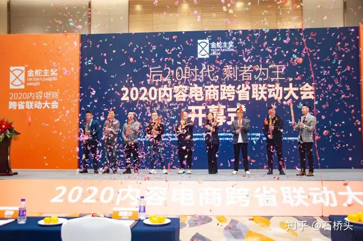 大会开始,金舵主奖组委会发起人、万吼创始人&CEO张伟丽(花名张乐天)登台致开幕词辞,宣布大会开幕,众嘉宾礼炮齐发,在热闹欢快的气氛中,一场事关2020年内容直播电商的年度大会正式拉开帷幕。