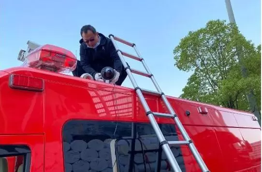 ↑ 迪爱斯公司技术团队为参加进博保障的消防车辆安装5G摄像头等设备