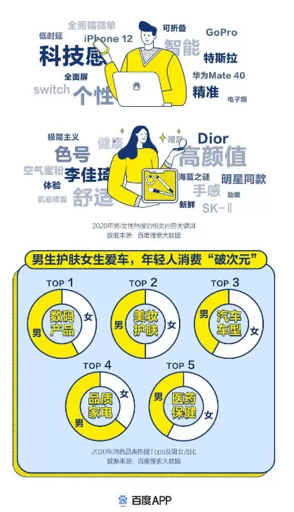 百度年轻人消费搜索大数据:男生搜护肤女生搜汽车,这届年轻人消费“破次元”