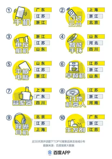 这届年轻人不再盲从、迷信品牌,好用与否,都要自己探索。数据显示,江浙沪的“测评青年”占比最大,他们更关心科技产品。百度搜索大数据显示,手机、口袋云台、单反相机等品类成为近30天测评话题下Top10。