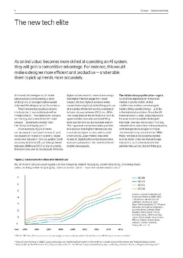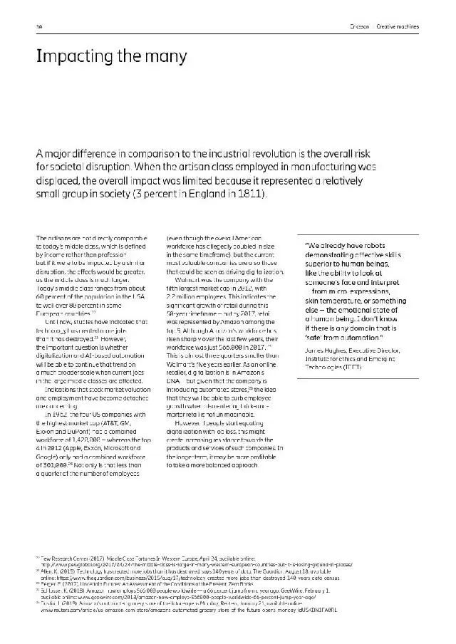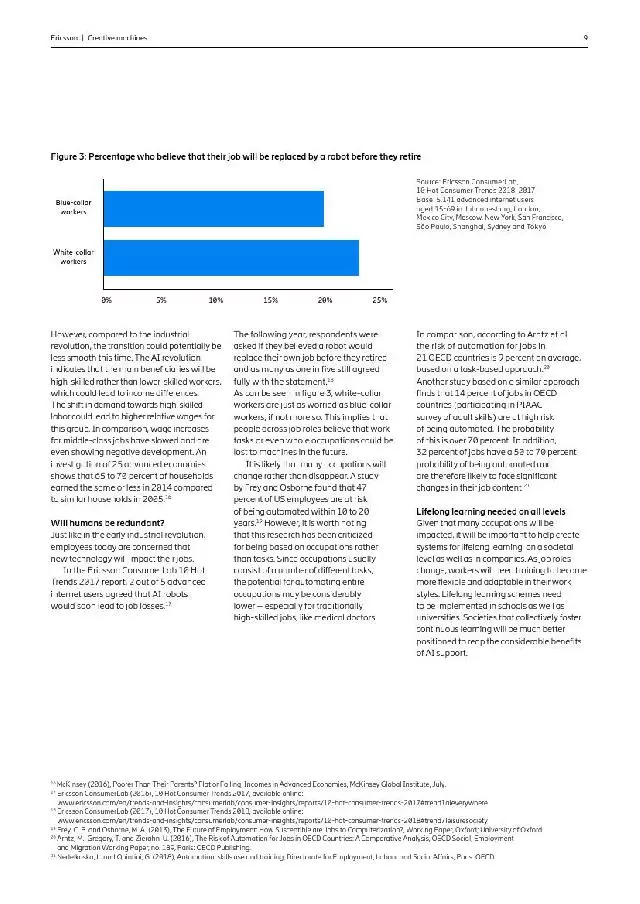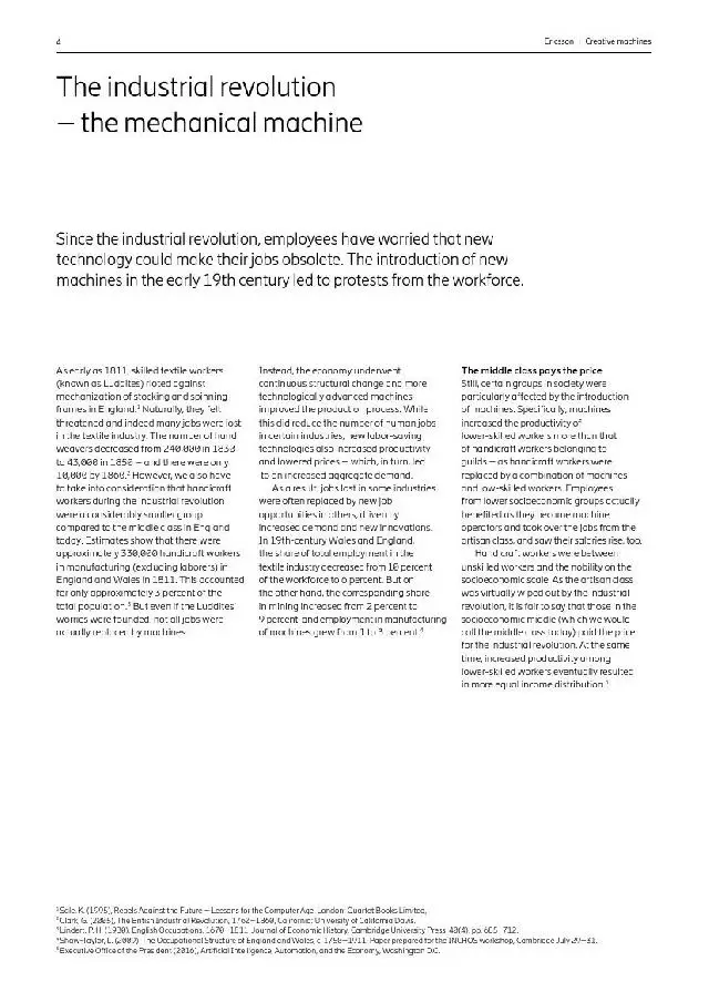 爱立信 Ericsson发布一项最新报告《人工智能将如何影响未来的劳动力市场》(How artificial intelligence will impact the future labor market),报告内容是基于对学术界和行业领导人就2017年进行的技术与创新主题进行19次深入访谈所获得的深入见解。大部分访谈均在美国加利福尼亚州湾区进行。但是,瑞典和印度的行业领导人也进行了一些访谈。此外,还采用了爱立信消费者和工业实验室分析平台在2000年至2017年间收集的定量消费者调查数据。