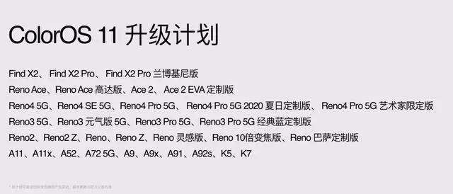 从 ColorOS 6 到 ColorOS 11,ColorOS 不断为用户带来更快、更稳定的使用体验。与此同时,ColorOS 也在新版本适配与跟进谷歌大版本上不断提速,带来适配时间更快、机型覆盖更广的适配计划。在 ColorOS 11 发布会上,ColorOS 宣布将为 33 款机型带来新版本适配,而这也是 ColorOS 有史以来最大规模的适配计划。