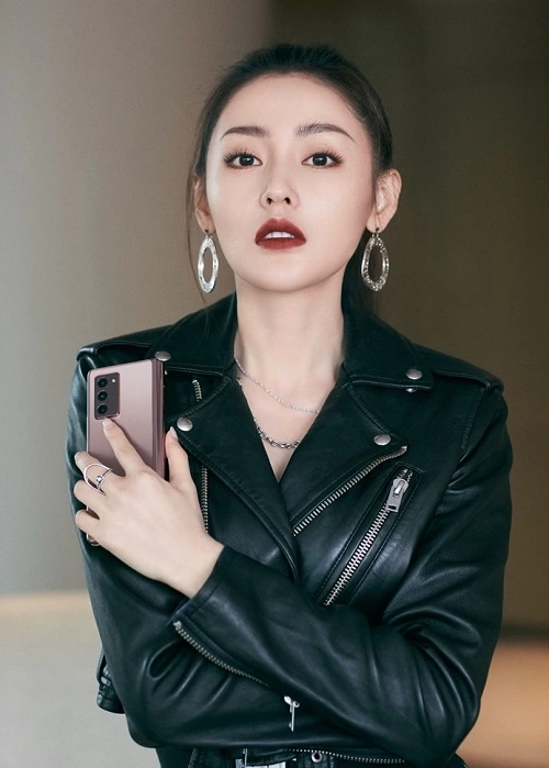 (张天爱手持三星Galaxy Z Fold2 5G)