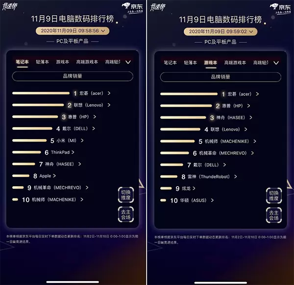 京东11.11品牌局势反转:宏碁反超联想成笔记本游戏本双榜冠军