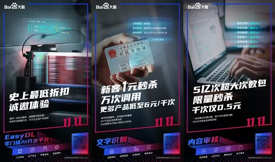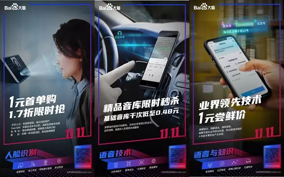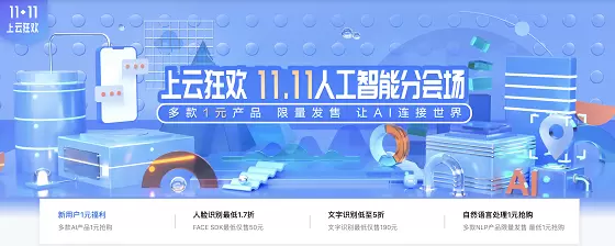 为降低企业使用AI技术的门槛,加快产业智能化进程,百度智能云“11·11上云1元起”亿元补贴活动上线,其中人工智能分会场以AI产品1元起售的超低特惠开启大型促销,人脸与人体识别、OCR文字识别、内容审核、语音识别、语言与知识、EasyDL零门槛AI开发平台等六大AI技术方向的软硬件产品服务上线1元/年、1-7折特卖等业内最低尝鲜价“豪华福利”。