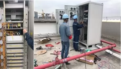 图1. 广州供电局、广州移动和华为工程师在现场调测