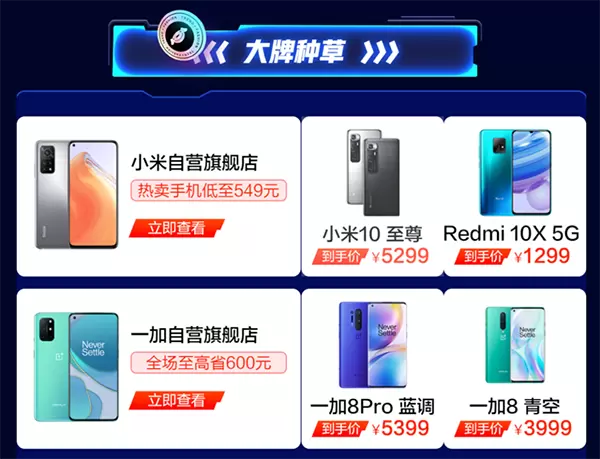 小米热卖手机低至549元;华为、vivo/iQOO全场至高24期免息、一加全场至高省600元、三星至高立省4000元、realme5G手机低至998元、OPPO全场至高优惠700元等等,看见这么优惠,你还不心动么?