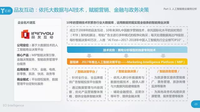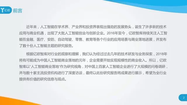 亿欧于近期发布了《2018中国人工智能商业落地研究报告》,该报告对行业发展进行了详尽的分析,并指出人工智能行业已经成为国内经济转型的技术先导,和提升国际竞争力的新机遇。同一日,亿欧公布了2018中国人工智能商业落地100强榜单,旷视科技Face++强势上榜。