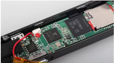 说完存储芯片,接下来说说另外那颗块头小点的,它身体虽小,可却是此款AI录音笔的主控芯片。从芯片上的图标和“ATS2837”字样可看出,飞利浦VTR5103采用的是国产芯片领头羊炬芯科技的蓝牙芯片模组。炬芯ATS2837是一个高集成度的蓝牙音频单芯片解决方案,主要定位在便携式蓝牙音箱、耳机和本地插卡播放器市场。同时它也可以作为蓝牙智能语音助手。 ATS2837支持在通过蓝牙A2DP播放音乐的同时,对语音进行双麦克风降噪和回声消除,以此来实现语音唤醒。ATS2837采用CPU和DSP的双核架构,内置大容量RAM,可满足不同应用场景需求。