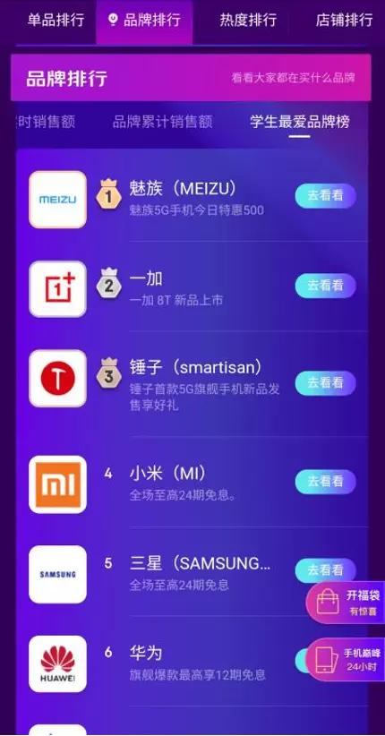 其他排名中,小米一骑绝尘稳居粉丝最爱品牌榜首位置,华为暂时位居第二、vivo第三;性价比较高的魅族手机杀出重围,抢先将“最受学生欢迎奖”揽入怀中,一加手机次之,锤子、小米、三星、华为等手机品牌均榜上提名,共享消费崛起一代的钟爱之情。