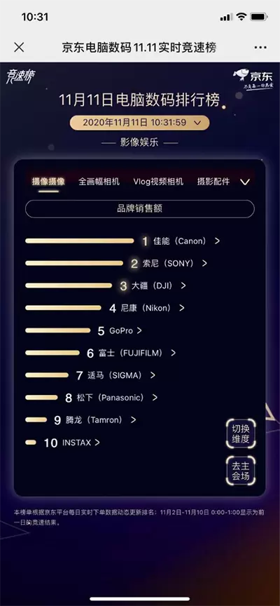 京东11.11电脑数码品牌收官战,佳能、索尼、尼康站稳销售额TOP3