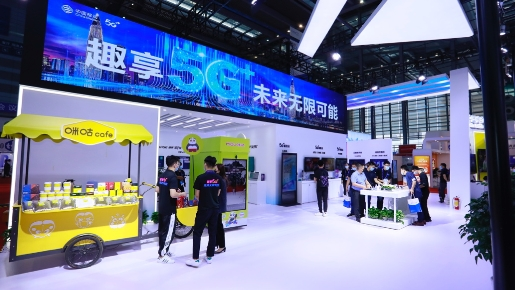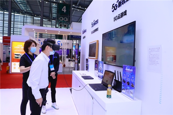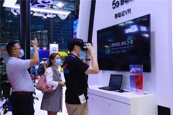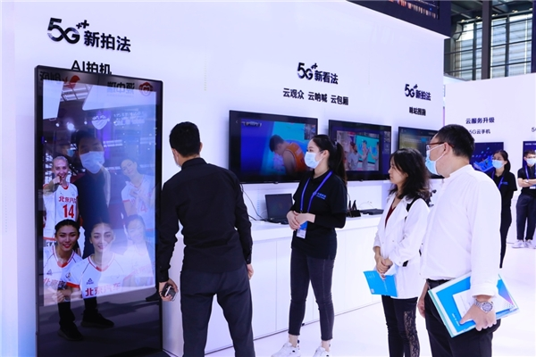 新看法展区主要呈现超高清视频内容、移动云VR和5G云观众观赛黑科技。“5G云观众”是国内唯一一款在线观赛+现场联动的互动直播产品,实现了比赛画面、用户视频、云观众画面的多屏同看。用户现场佩戴VR头盔,沉浸式感受体育、综艺、影视等丰富的IP内容。咪咕公司打造了超高清视频与超高清直播的内容、网络、体验全球全链路平台,5G用户可在电视、手机、VR/AR等终端感受超高清画面和沉浸式临场体验。